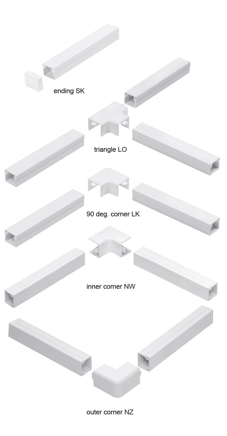 | Išmatavimai | Vidinis kampas 20×18, Alkūninė jungtis 20×18, Išorinė jungtis 20×18, Alkūninė jungtis 25×15, Vidinis kampas 20×11, Alkūninė jungtis 32×15, Vidinis kampas 32×15, Išorinė jungtis 32×15, Alkūninė jungtis 40×25, Vidinis kampas 40×25, Išorinė jungtis 40×25, Alkūninė jungtis 40×40, Vidinis kampas 40×40, Išorinė jungtis 40×40 |